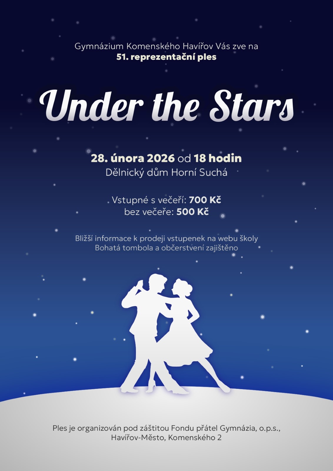 Srdečně Vás zveme na 51. reprezentační ples Gymnázia Komenského Havířov, který se uskuteční v sobotu 28. února 2026 v Dělnickém domě v Horní Suché. Je zajištěna bohatá tombola, občerstvení a celovečerní program.