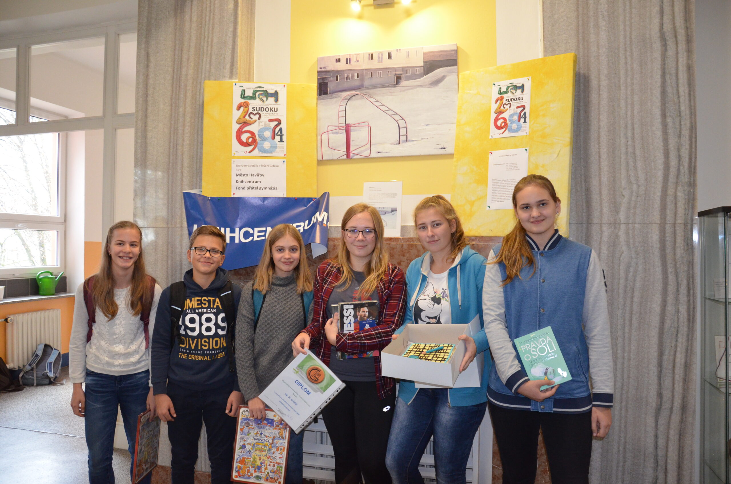 Vítězové dostali pohár, první tři tradičně dort ve tvaru sudoku a také knihu. Všichni vítězové druhé kategorie obdrželi sladkou odměnu. Ceny pro soutěžící jsme mohli pořídit díky finanční podpoře města Havířov, Knihcentra a Fondu přátel našeho gymnázia. Děkujeme.
